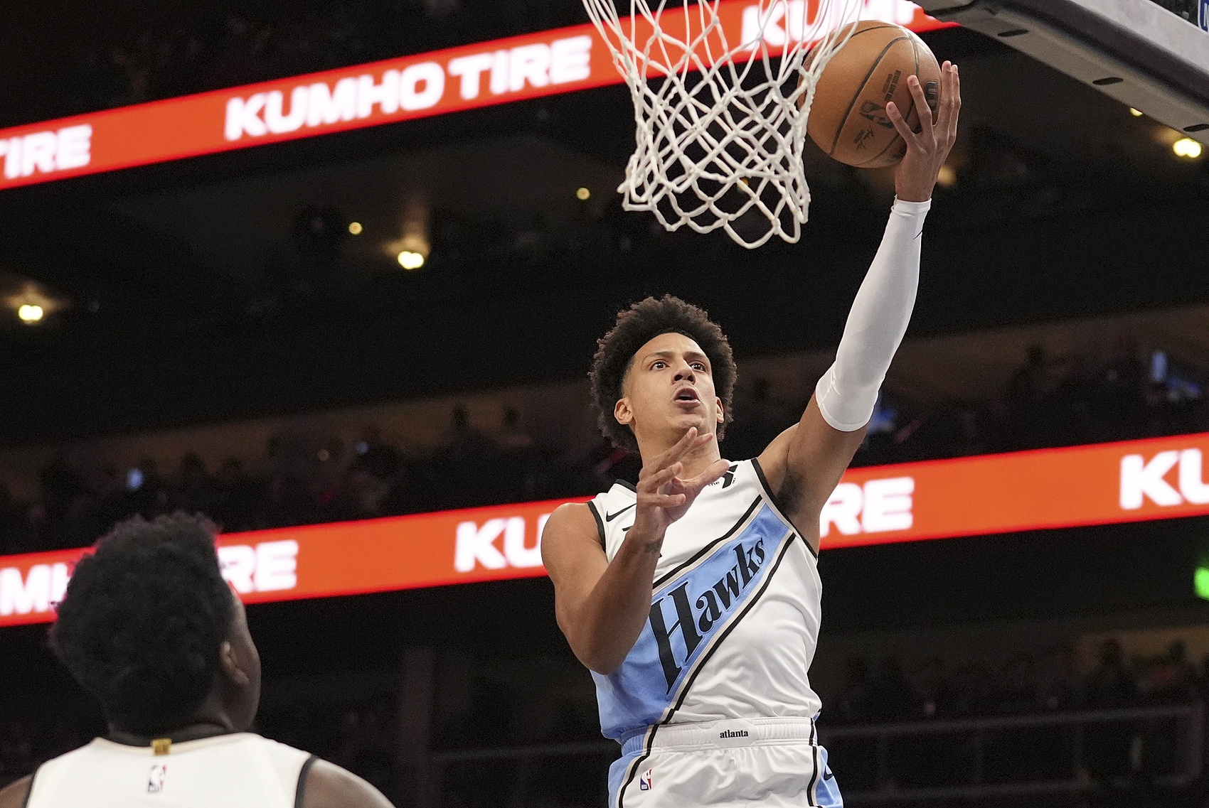 表现全面!杰伦约翰逊滑翔暴扣引爆全场14投8中得17分11板7助