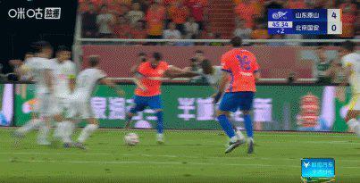 上半场补时2分钟,第45+1分钟,马德鲁加兜射死角破门,泰山4比0领先国安。