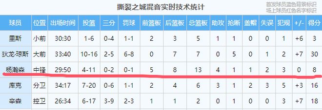 本场比赛,杨瀚森首发出战,全场共获29分50秒的出场时间,投篮11中4,三分球2中0,罚篮1中0,砍下8分13篮板4助攻1抢断1盖帽。