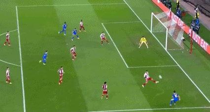 第52分钟,埃泽右路45°传中,塔雷米抢点头槌破门,奥林匹亚科斯扳回一城,2-3!