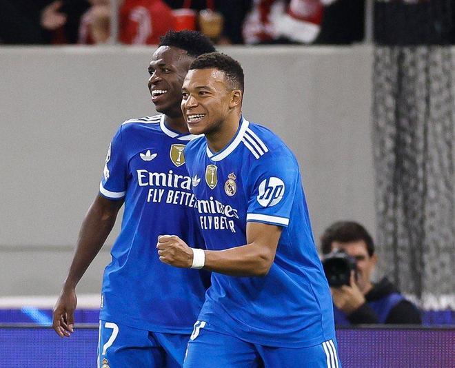 第22分钟,皇马踢出犀利反击,威尼修斯左路长传,姆巴佩单刀推射,打穿措拉基斯的小门,为银河战舰扳平,1-1!第24分钟,阿诺德右路做球,居莱尔转身起球传中,姆巴佩抢点头槌建功,2分钟内梅开二度,皇马迅速反超,2-1!