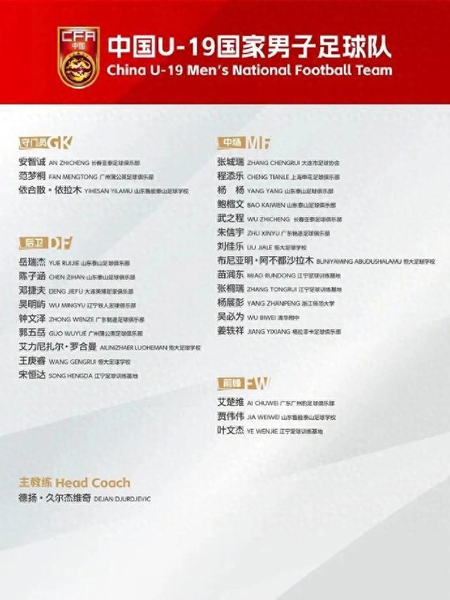 1月9日,足协发文:为做好2027亚足联U20亚洲杯备战工作,经队伍教练组研究,中国足球协会批准,中国U19国家男子足球队定于2026年1月12日至2月9日赴广东省肇庆市组织集训。