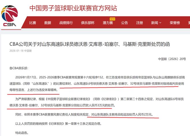 - CBA | 晚上7点!CBA公司开出大罚单,山东队邱彪等3人被罚款